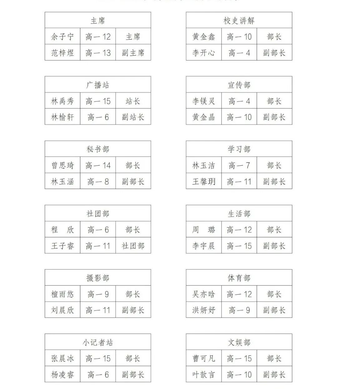 2025-2026学年团委学生会社团干部名单