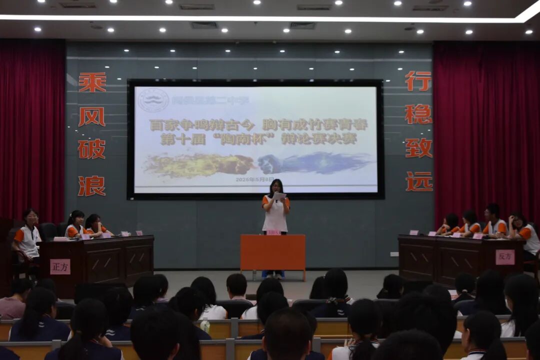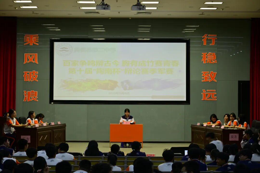妙语连珠,辩卷风云,为了深化青年对中国特色社会主义理论体系的理解与认同,响应新时代人才强国的号召,进一步培养学生辩证思维,语言表达,团队协作能力,我校举办了以“百家争鸣辩古今,胸有成竹赛青春”为主题的第十届陶南杯辩论赛。高一年段16支队伍展开激烈角逐,从春意盎然到炎炎夏日,从初露锋芒到巅峰对决,历时三个月的辩论赛,为校园生活添加了无数光彩。